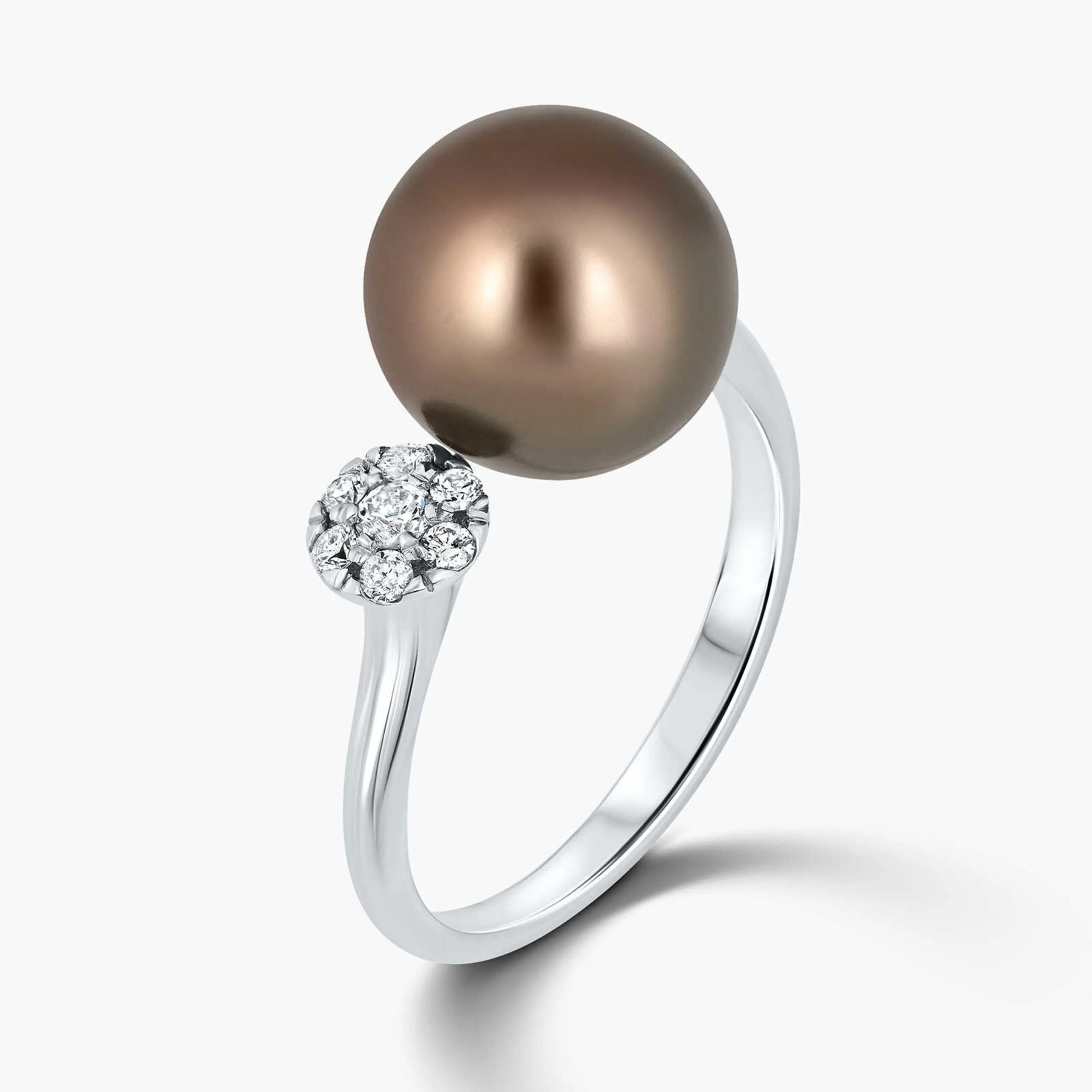 טבעת פנינה משובצת יהלומים
