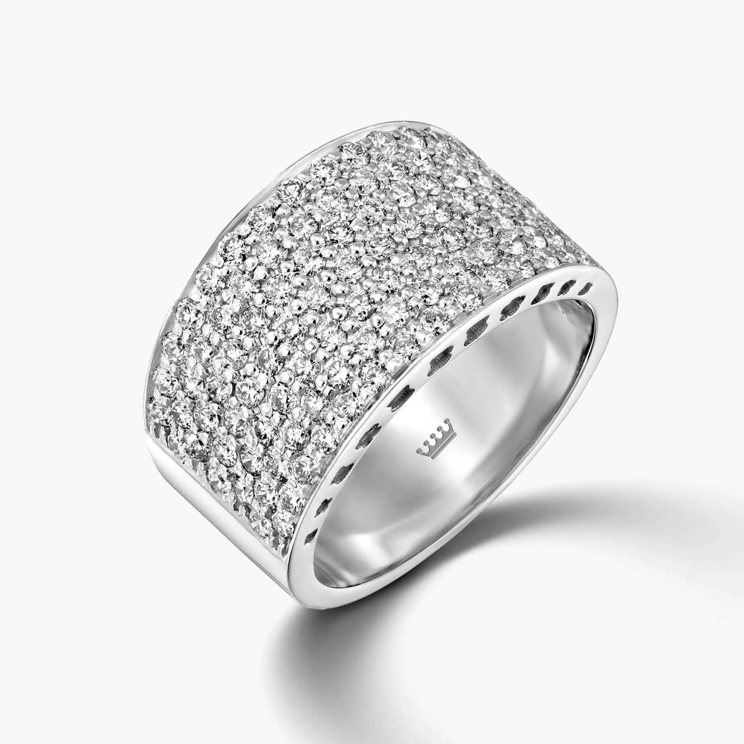 טבעת זהב 14K משובצת יהלומים בסגנון פווה. סה"כ משובצים בטבעת 101יהלומים טבעיים ונוצצים במשקל 1.27 קראט ברמת נקיון SI ובצבע H. רטחב הטבעת 1.1 ס"מ
