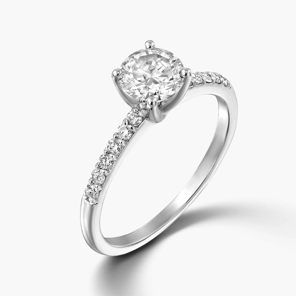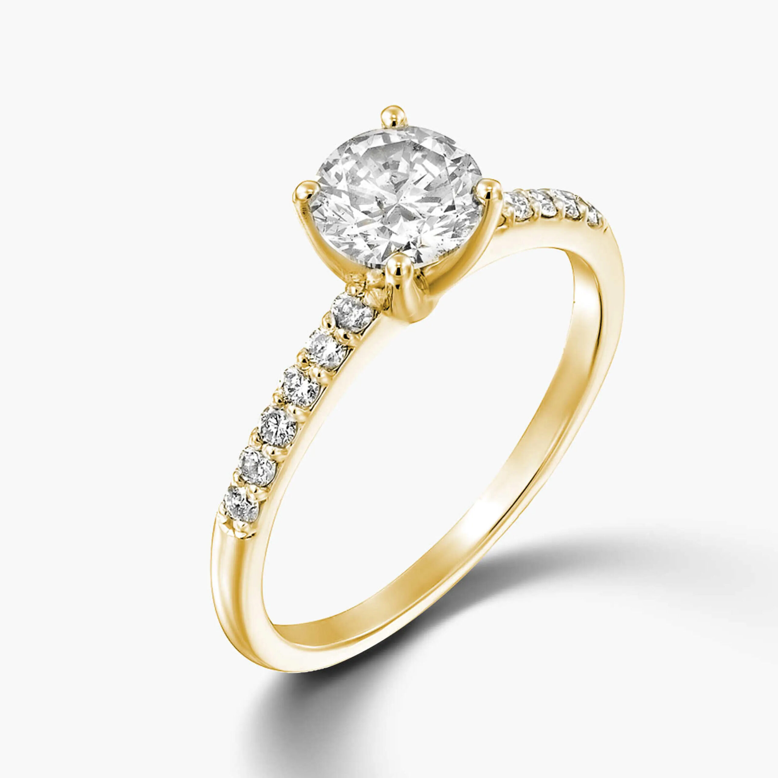 טבעת זהב 14K משובצת יהלום מרכזי מרשים בגדלים משתנים ו 14 יהלומים קטנים יותר בצדדיו. ניתן לבחור את גודל היהלום המרכזי בלחיצה על מלאי בסניפים. עובי הטבעת 1 מ"מ