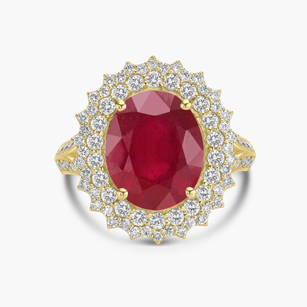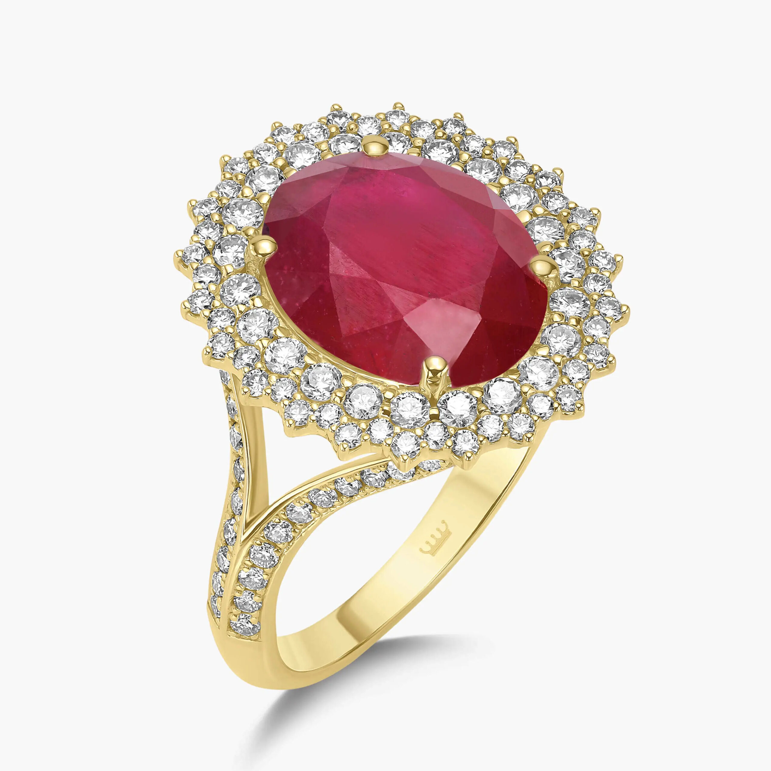 טבעת מרשימה המשובצת רובי גלס ויהלומים