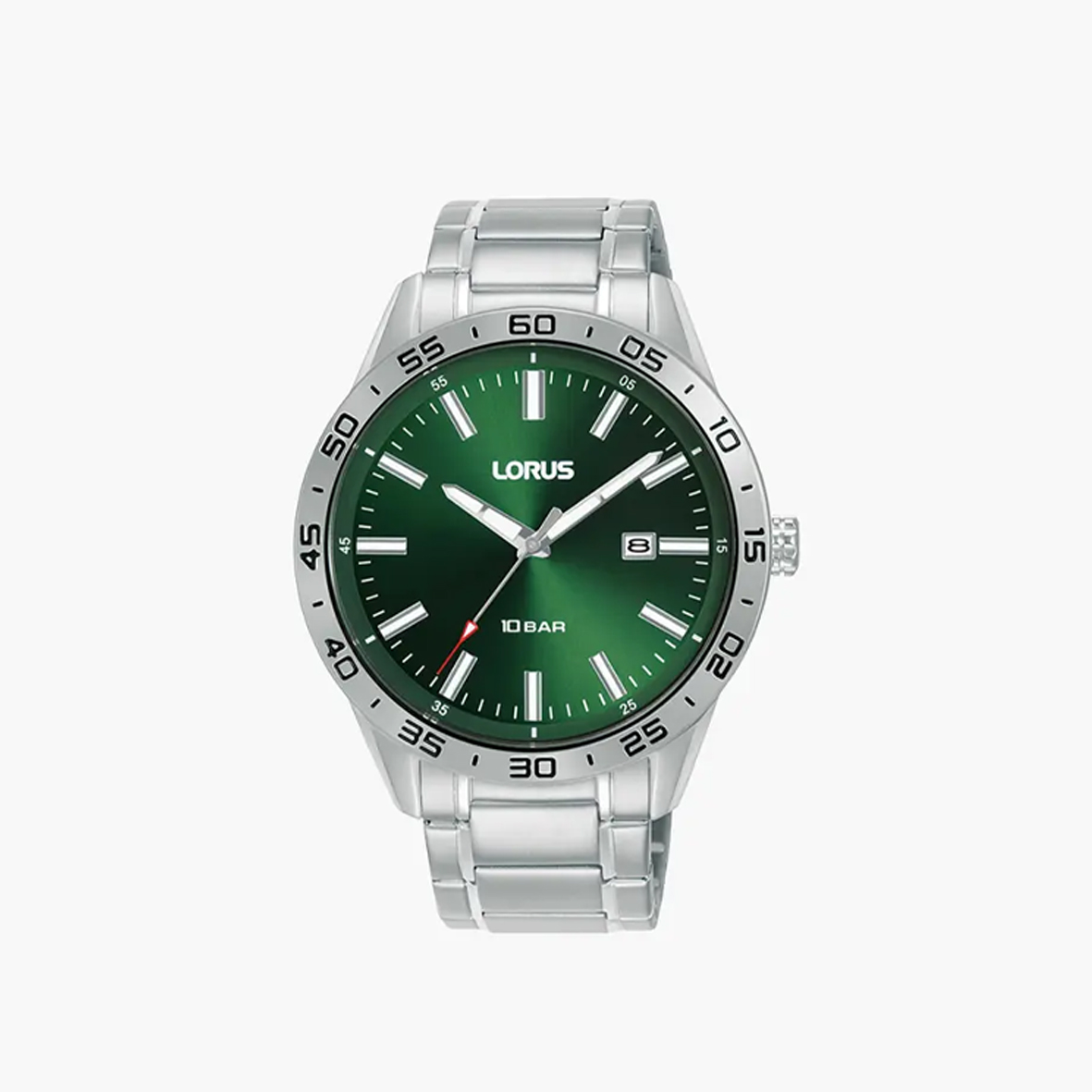 שעון LORUS אלגנטי לגברים מבית SEIKO יפן בעל מנגנון קוורץ. לוח השעון בגוון ירוק בגימור מבריק. לשעון תאריכון וזכוכית מינרלית שטוחה, גוף השעון והצמיד עשויים פלדת אל חלד איכותית. השעון עמיד במים עד 100 מ' עומק. קוטר השעון 42 מ"מ.