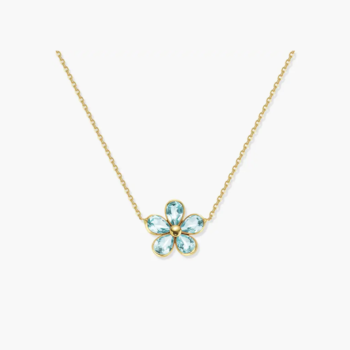 שרשרת כלנית- עם תליון פרח בשיבוץ בלו טופז